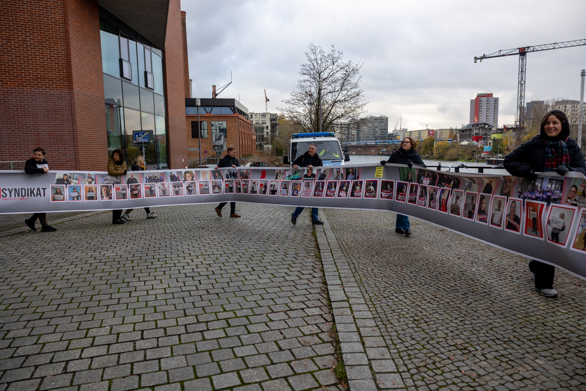 Teilweise über 500 km reisten die 20 teilnehmenden Syndikatis an, um ihrer Forderung Ausdruck zu verleihen, dass sie Gute Arbeit in ver.di und eine angemessene Entgelterhöhung erwarten. Auf 30 Meter Transparent zeigten über 200 weiter ver.di-aner*innen Gesicht und formulierten ihre Erwartungen.